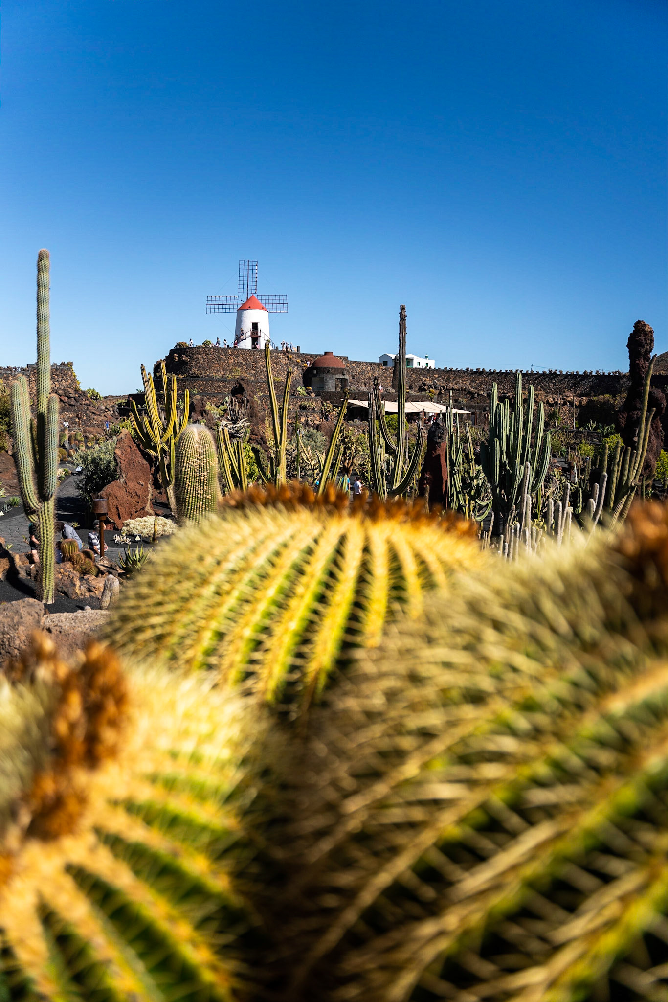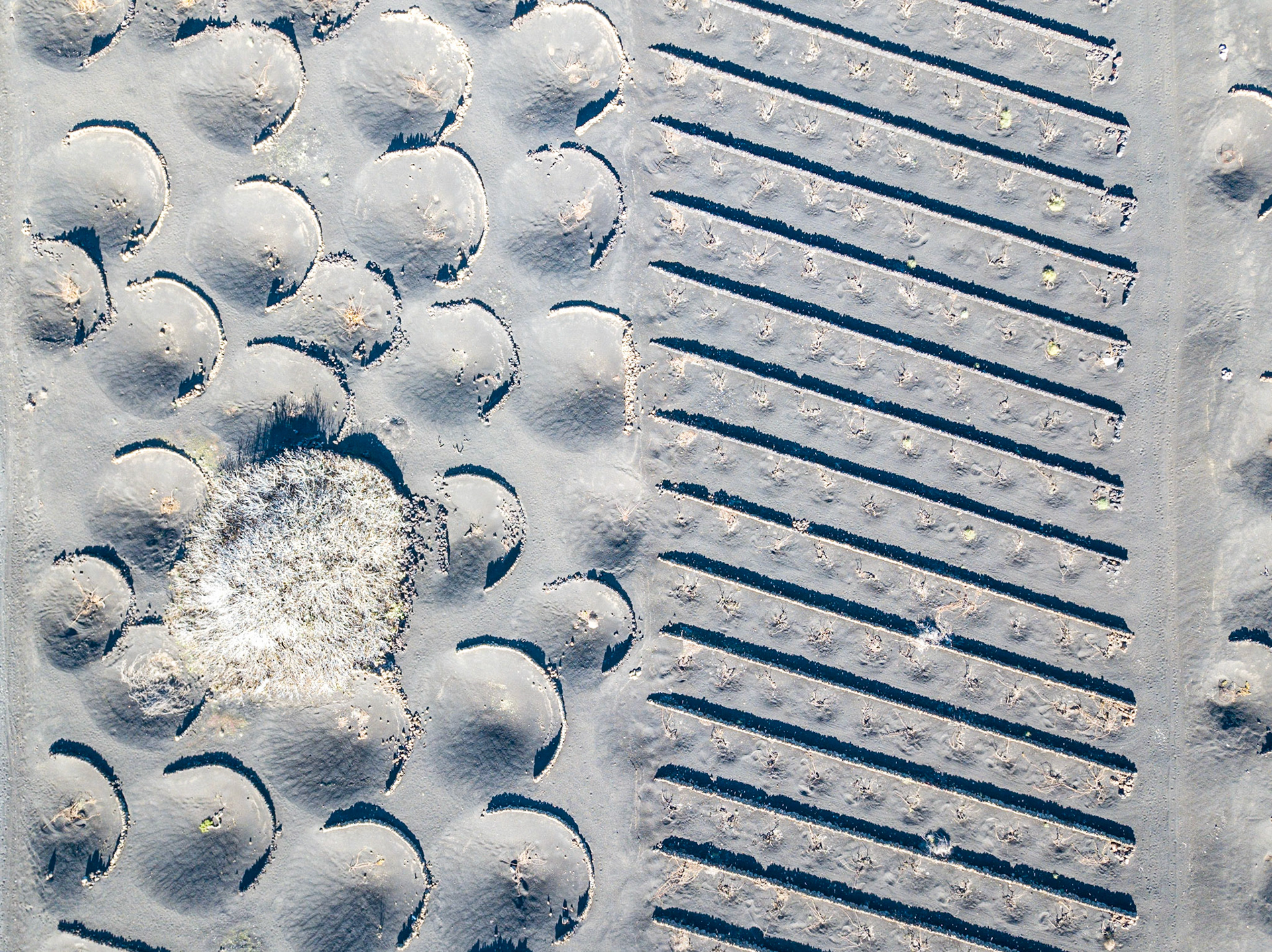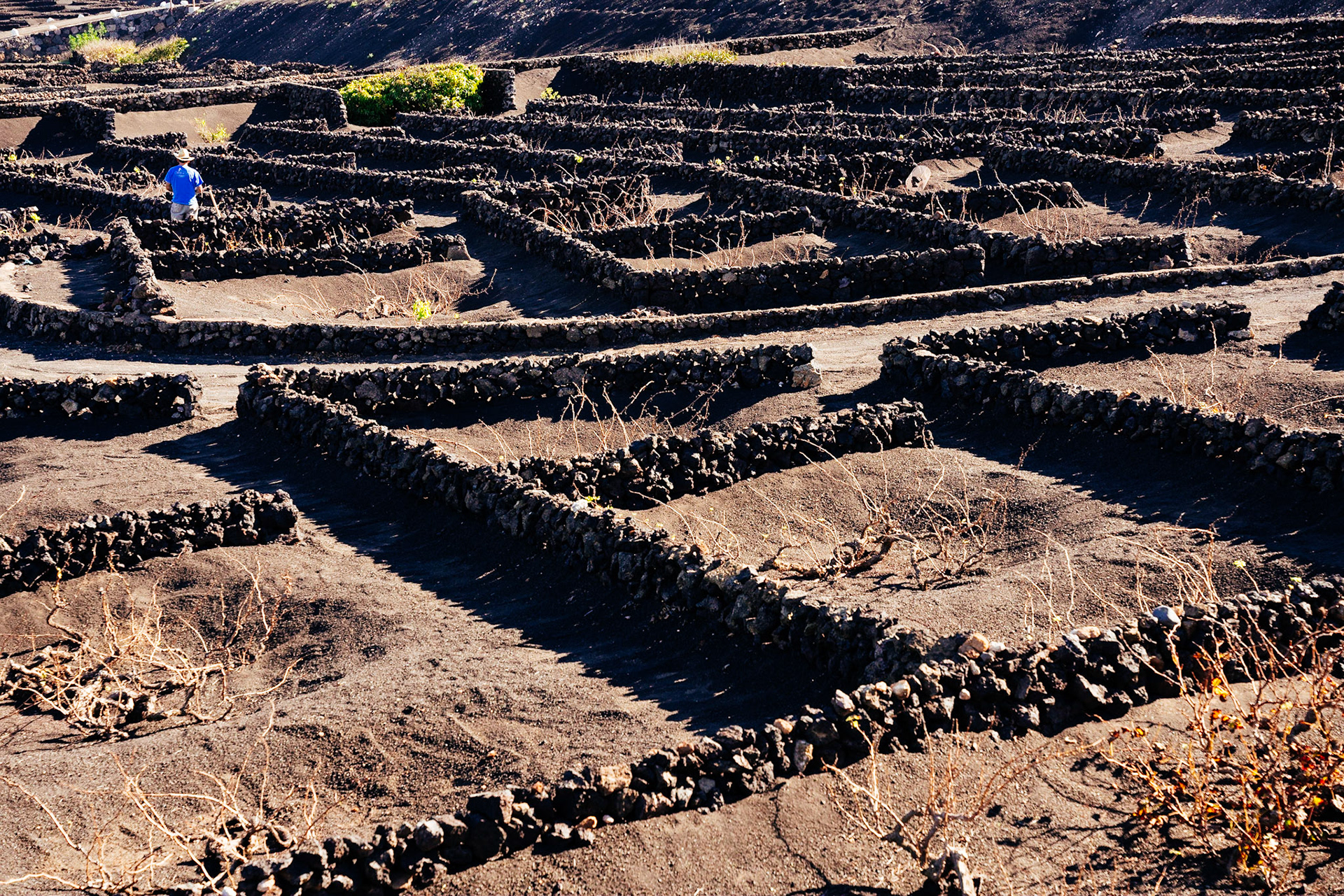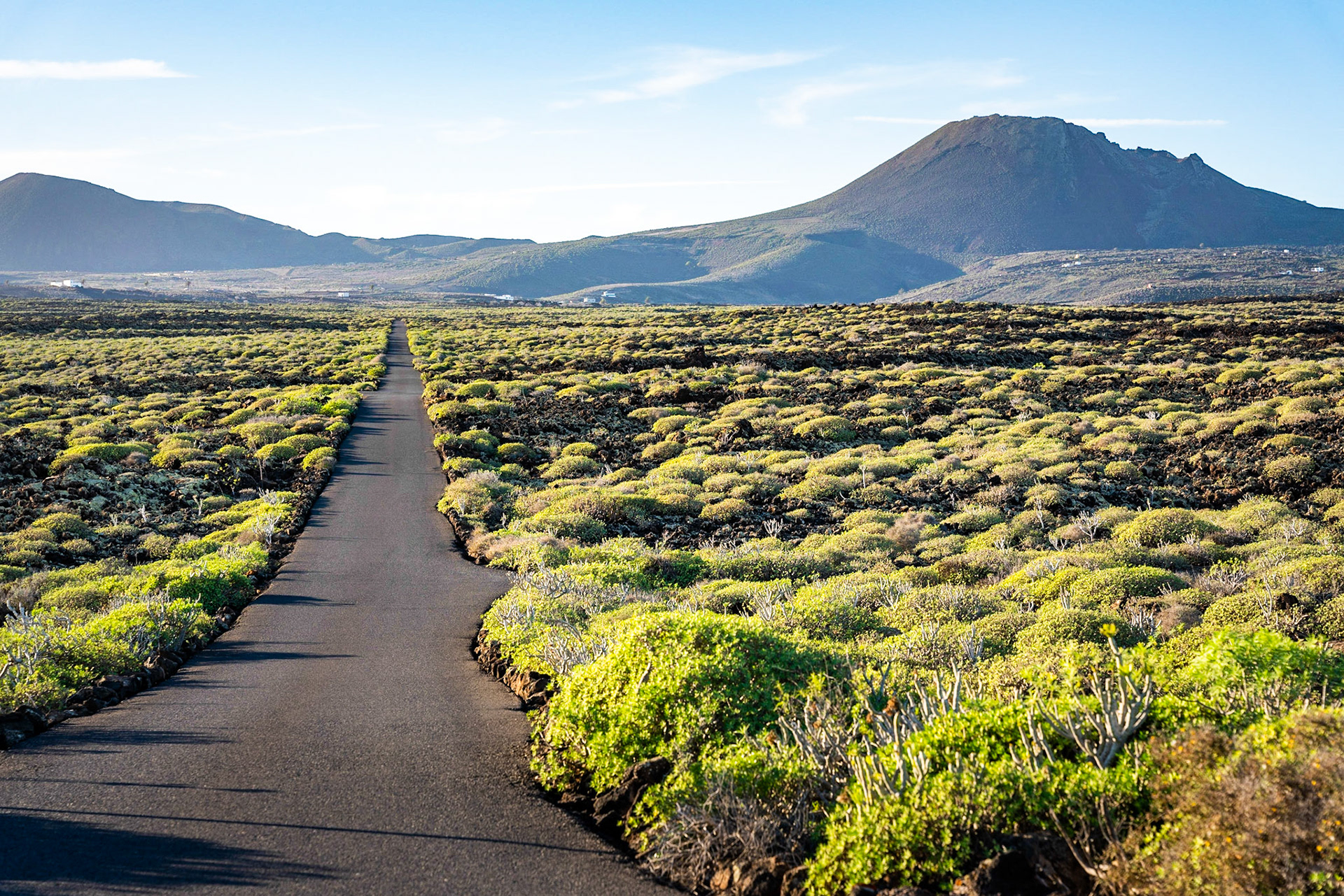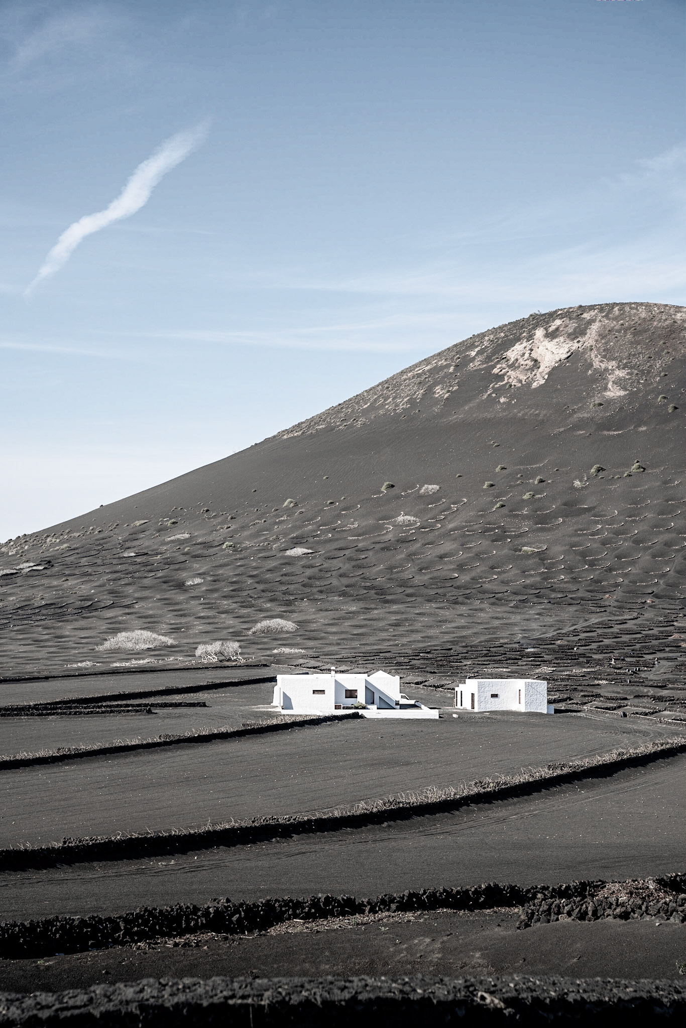 Village and Volcano in rural area of La Geria, Lanzarote, Canary Islands, Spain