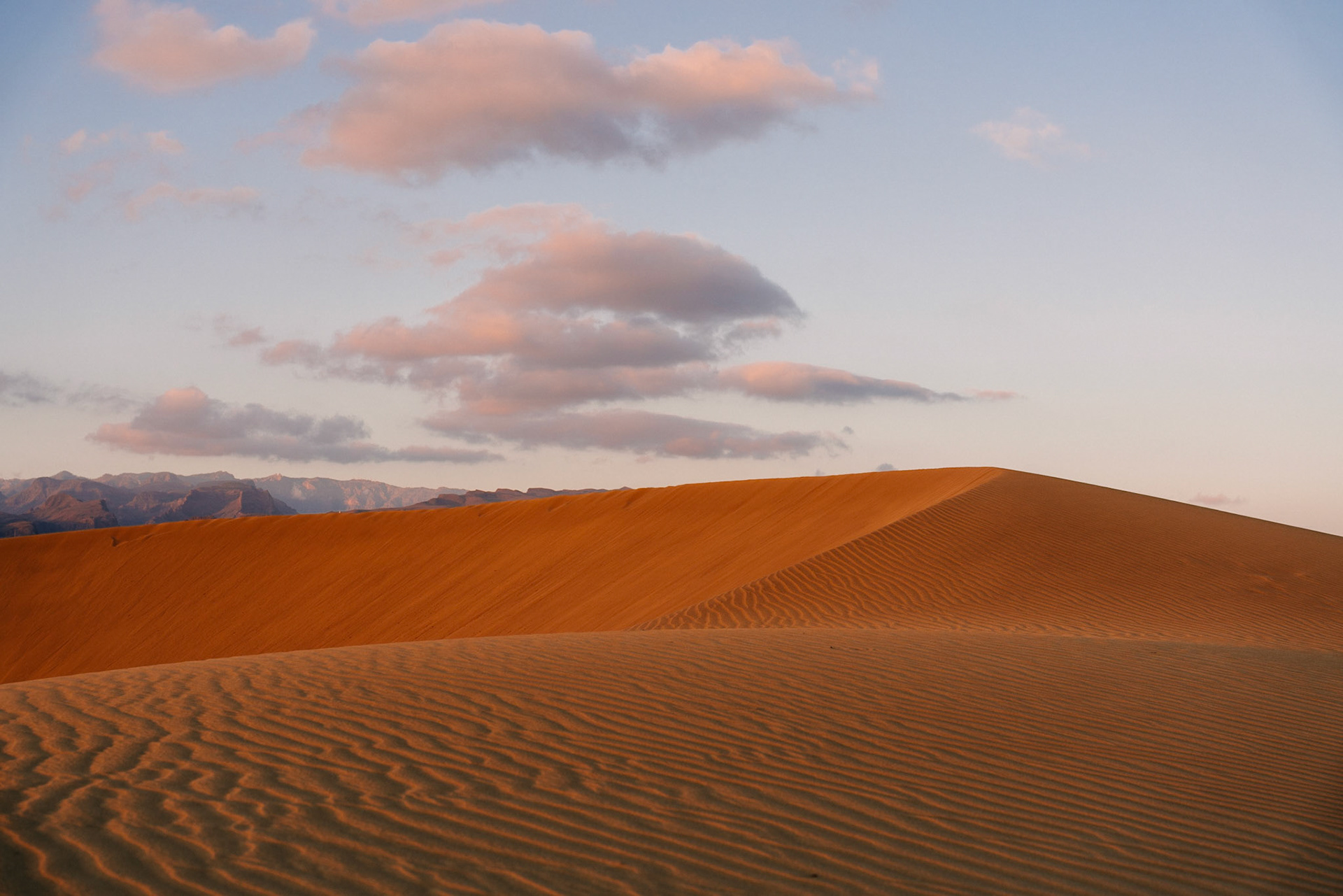 Volcanic landscape at sunset, Timanfaya, Lanzarote, Canary Islands. Spain