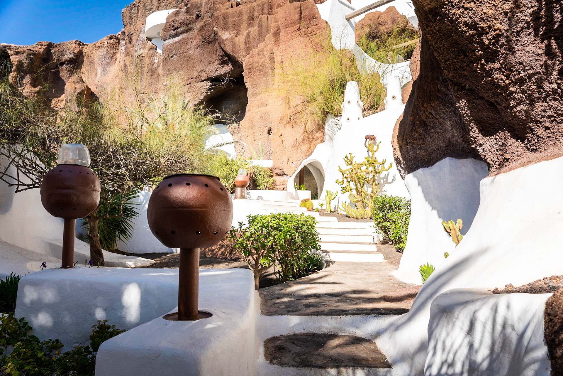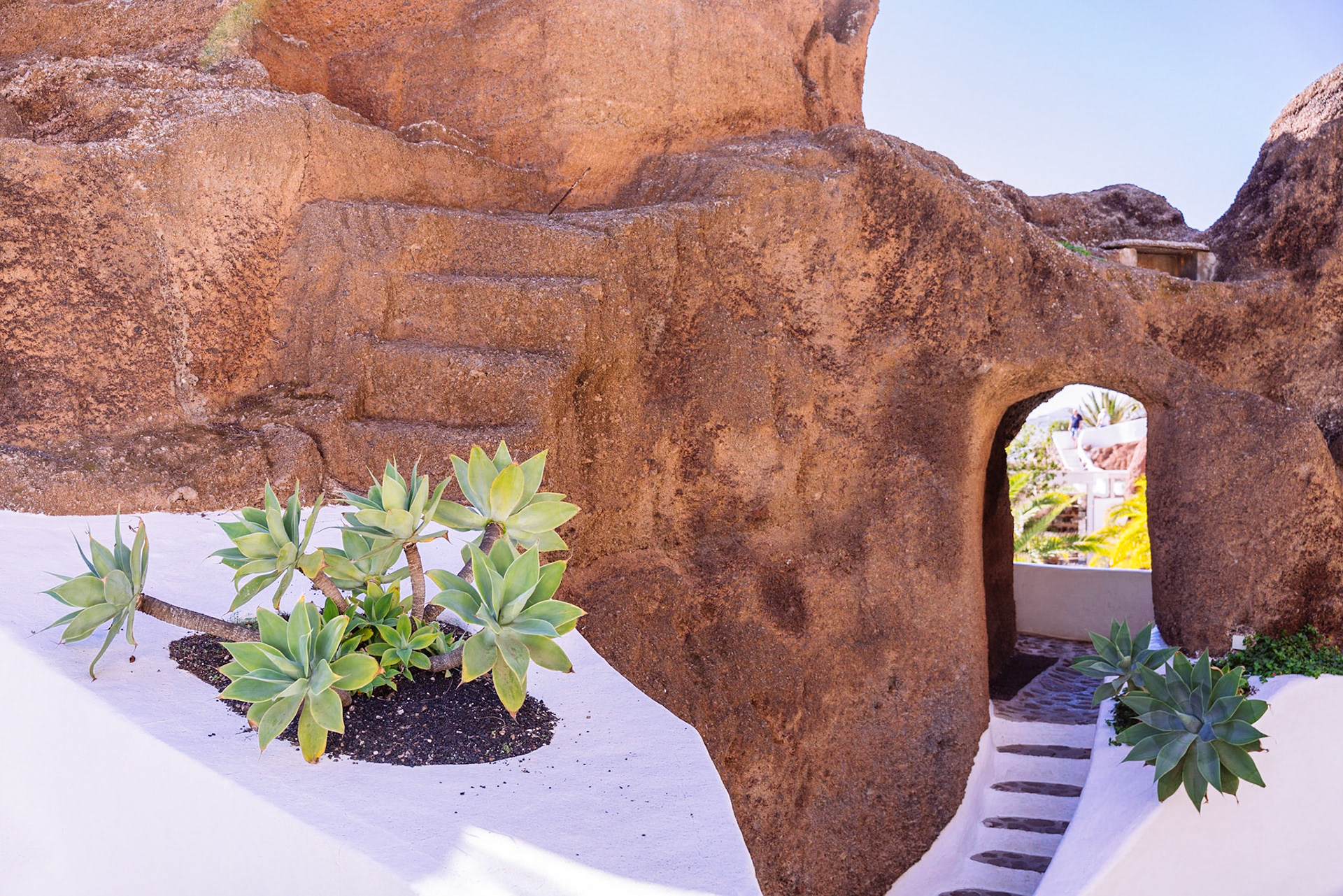 Jameos del Agua by Cesar Manrique, Lanzarote, Canary Islands. Pool and palm trees
