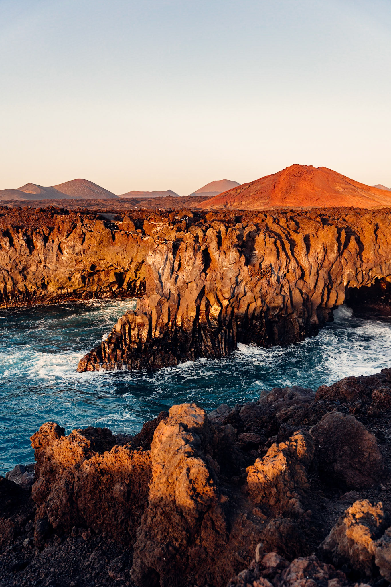 Los Hervideros lava cliffs and ocean waves, Lanzarote, Canary Islands, Spain