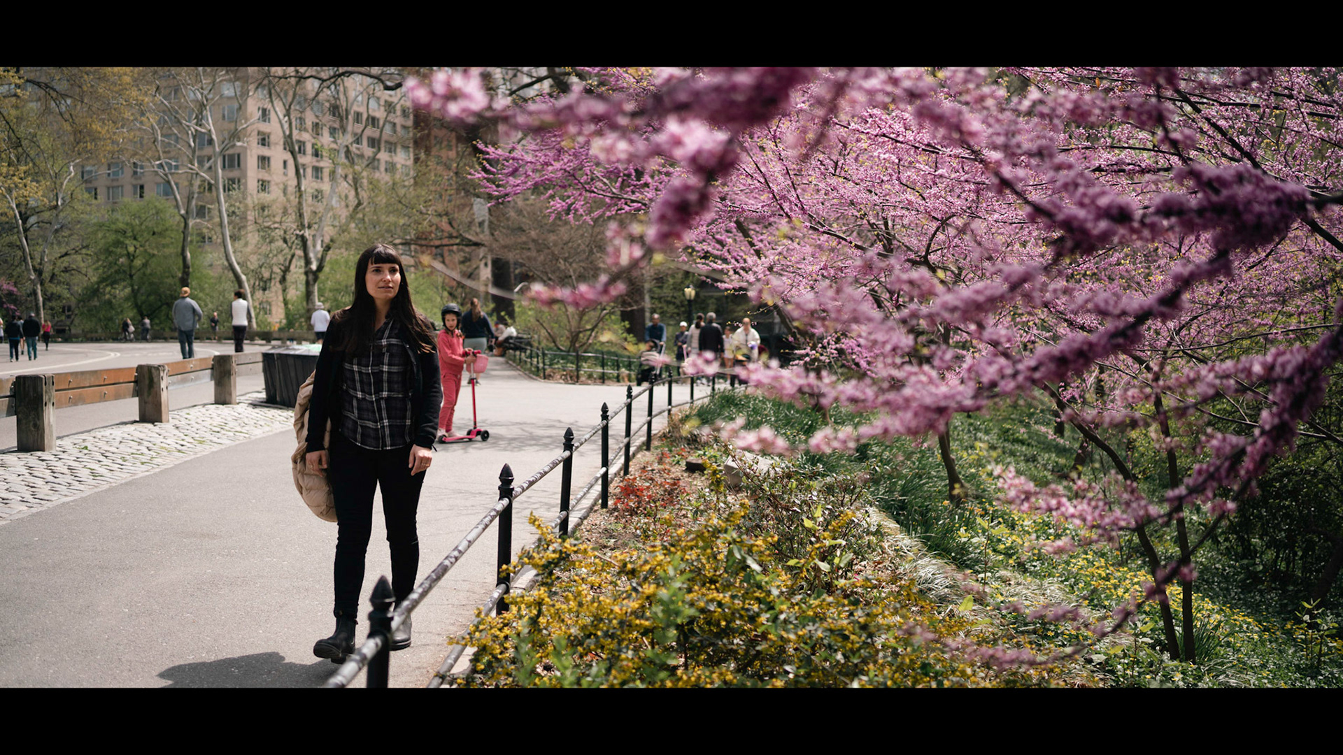 We see Zack walking in Bryant Park, searching for Kim. Then we see Kim next to Steven: they both ignore each other and look at their cell phones - SIGMA 35 - 65mm