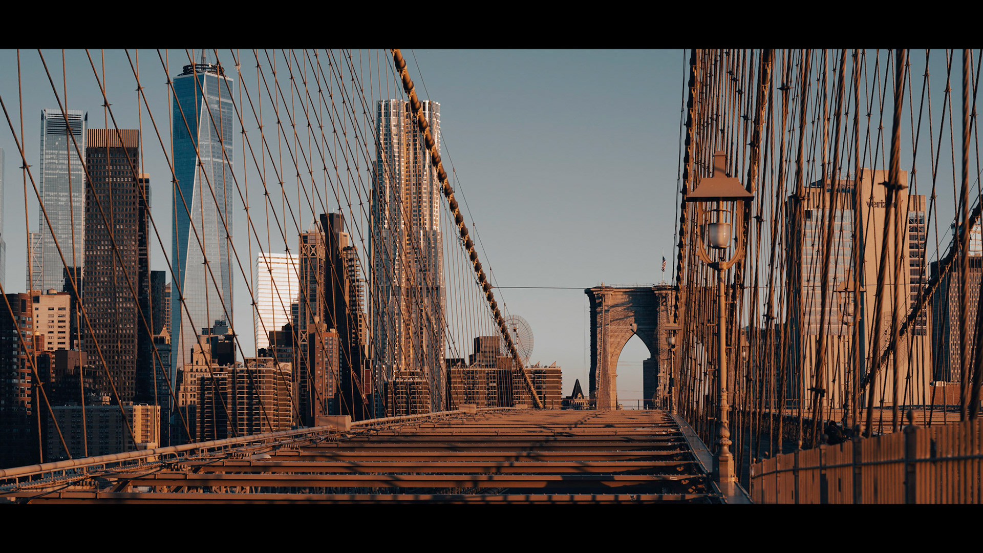 Camera zooms on the sun rising through the iron vaults of the Manhattan bridge. Light becomes warmer. Quick shots on the Brooklyn Bridge and finally zoom on the Manhattan bridge seen from Dumbo - SIGMA 35mm - 65mm - 100-400mm