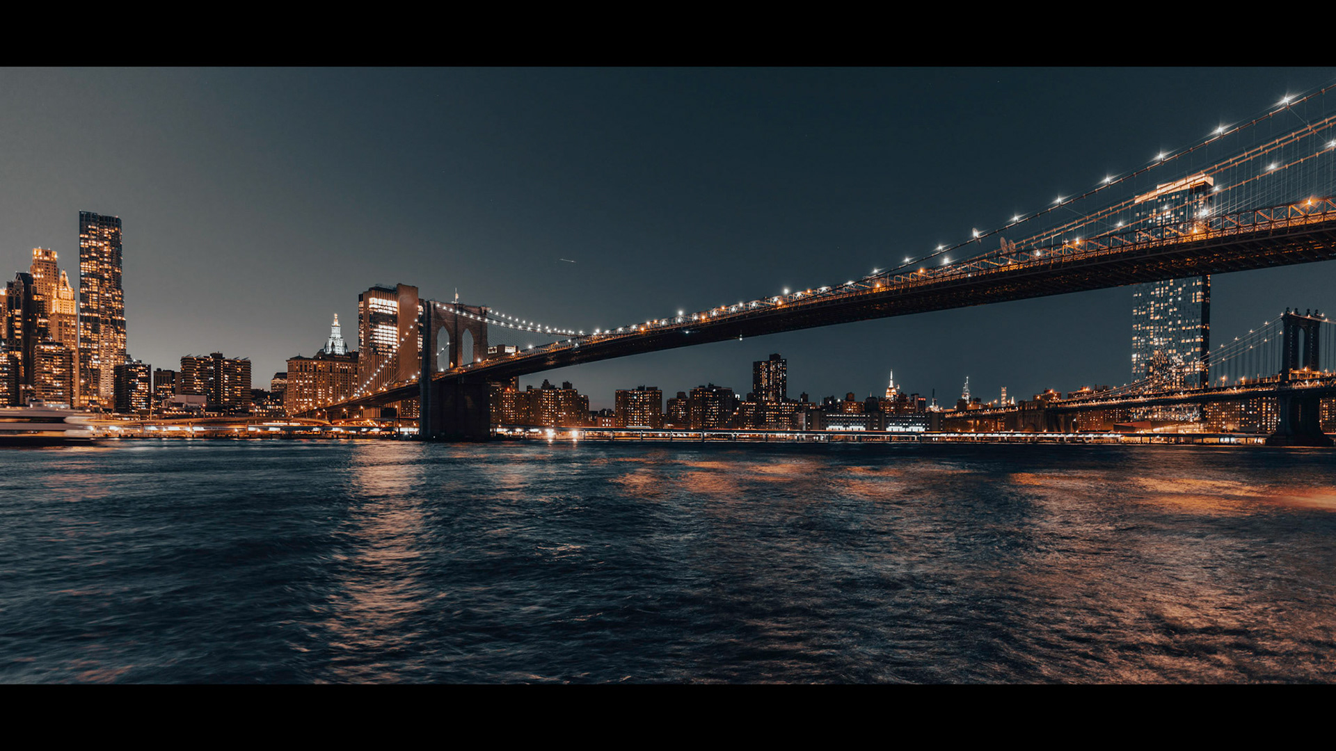 Multiple shots of a terrace looking to Manhattan Bridge from Dumbo. City lights are on - SIGMA 35mm - 65mm - 90mm